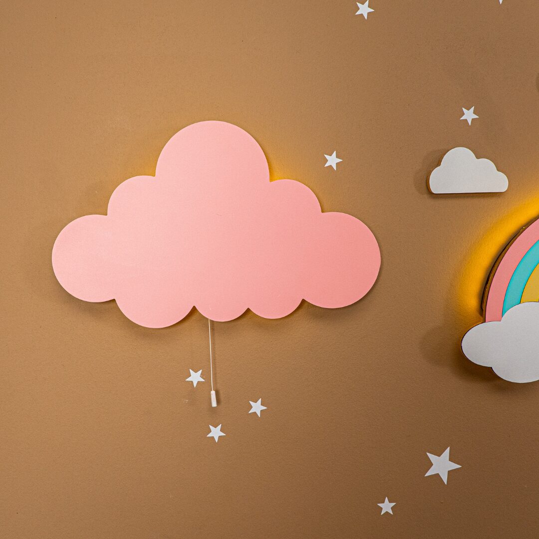 Veilleuse Murale LED Arc-en-Ciel & Nuage en Bois Peint Main — 4 Couleurs Pastel, Chambre Bébé Féérique