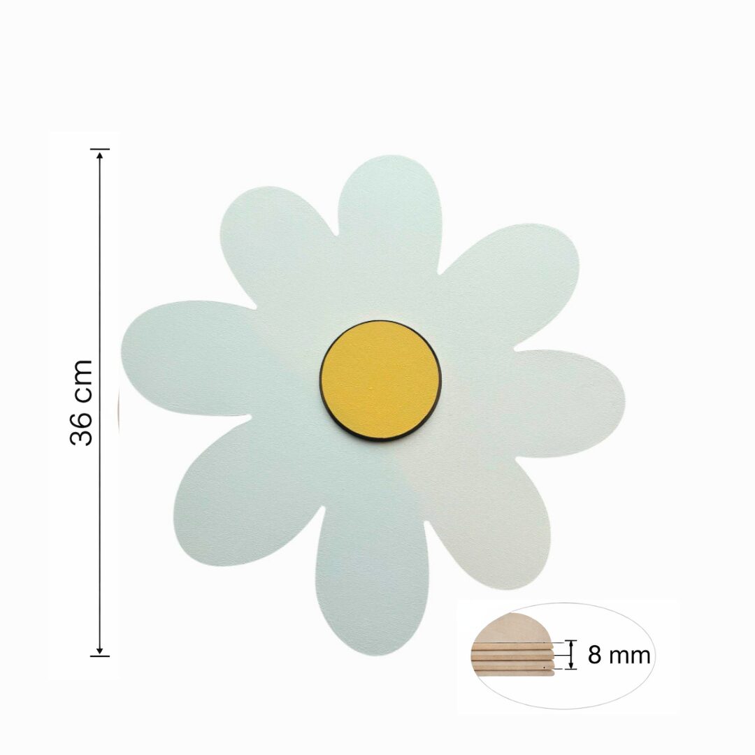 🌼 Veilleuse Murale Marguerite LED — Fleur Bois Blanc & Cœur Jaune — une grande marguerite aux 8 pétales blancs arrondis en bois découpé laser, avec un cœur circulaire jaune doré en relief 3D posé au centre. Son rétroéclairage LED contour doré enveloppe généreusement chaque pétale d’un halo chaleureux et printanier. ✨ Style rétro-floral tendance — mixte garçon & fille, parfait pour toute chambre bébé nature, boho ou scandinave.